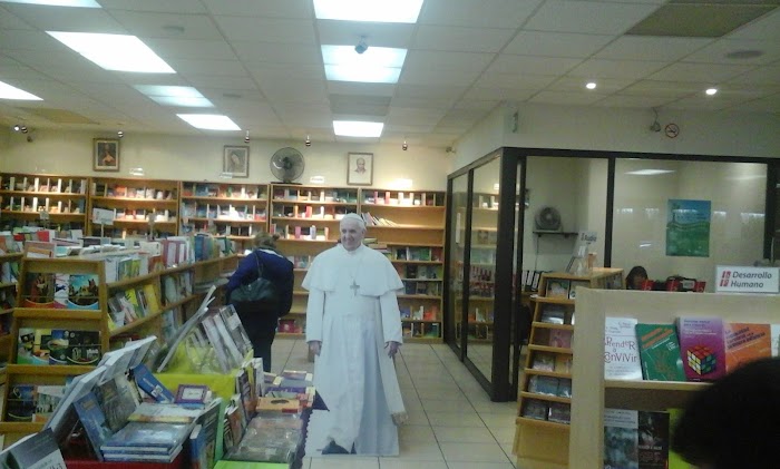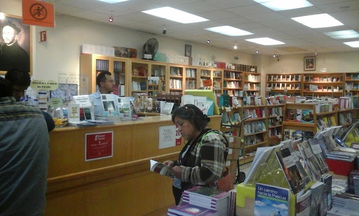 Tiene gran variedad de libros de ética filosofía del ámbito católico, es muy limpio y no tiene mucha ventilación pero en general no está muy lleno. Tiene estacionamiento techado enfrente osea que está muy bien en cuanto a acceso. Solo atiende al parecer una persona y por eso tardan un poco en hacerlo, pero el trato es amable. Los precios también son accesibles. Yo compre una biblia para primera comunión y me salió casi a la mitad del precio de otros lugares por Internet.