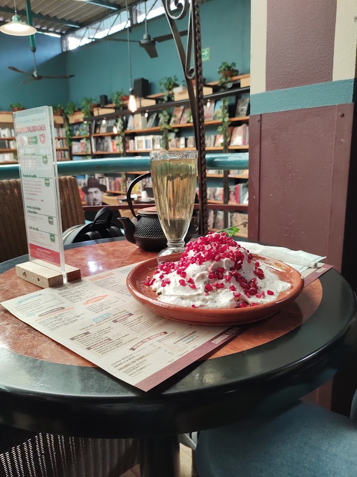 Muy recomendableLos chilaquiles estaban ricos, mas no me parecieron tan especial, el lugar me gustó por que es grande y a pesar de eso se llena bastante. Está rodeada de libros de todo tipo, me encantó. Próximamente iré a comprar varios que me interesaron.