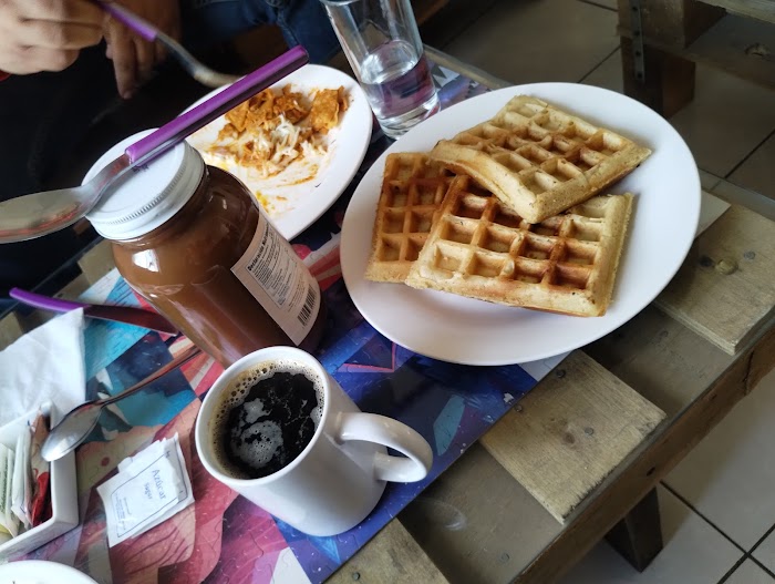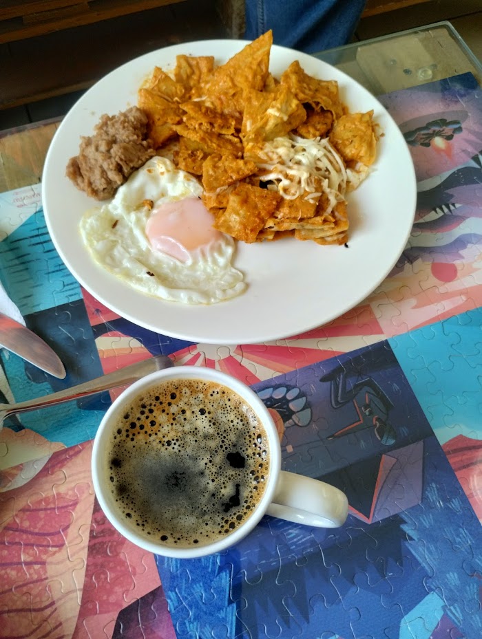 Los chilaquiles son espectaculares, de los más ricos que hemos probado, hasta el huevo estaba delicioso, yo pedí el desayuno con waffles, que es huevo, frijoles, waffles y café o jugo de naranja, cuando nosotros fuimos ya no me completaron la porción de frijoles por lo que me agregaron otro waffles, sinceramente vale pena ir.Es un espacio tranquilo y muy bonito para pasar el rato, tiene muy buenos libros y muy buen servicio en atención al cliente , los precios dentro del lugar son muy económicos, yo lo recomiendo, es un lugar muy agradable para poder pasar el rato! 🙂