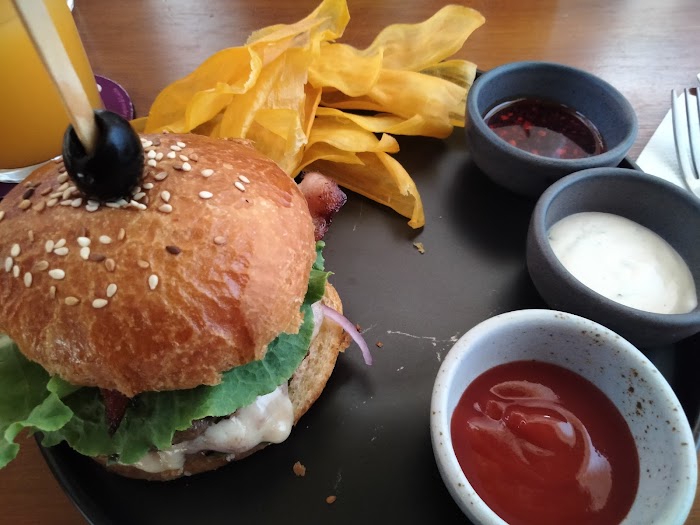 Es un lugar bastante tranquilo, es bastante fresco para la temporada de calor. Su hamburguesa de la casa con chips ofrecen un gran sabor acompañadas con sus aguas del día.
