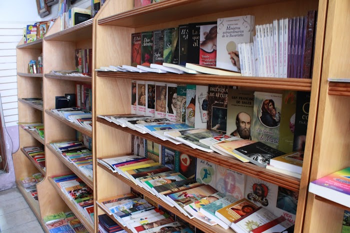 En la librería pueden adquirir diversos artículos religiosos, cirios, imágenes, rosarios, hornamentos, etc.
